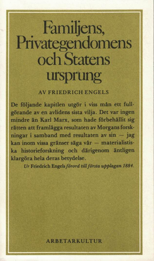 Familjens, privategendomens och statens ursprung : i anslutning till Lewis H. Morgans forskningar